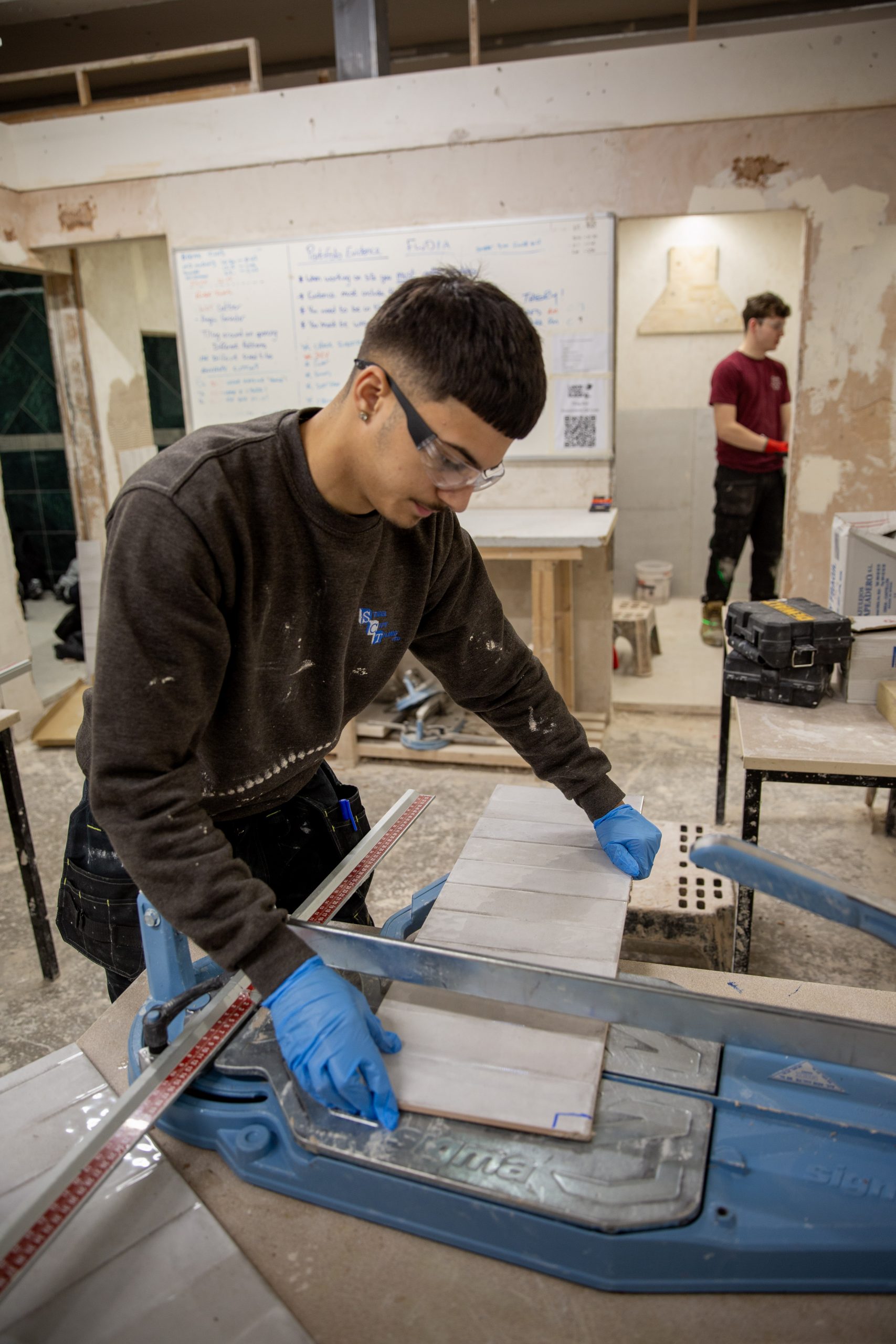 The apprenticeship itself is a two-year Level 2 Wall & Floor Tiling programme, combining block-release college learning with on-site experience. Apprentices earn while they train and can progress into self-employment or specialist roles once qualified – a model increasingly recognised as essential to rebuilding specialist skills.