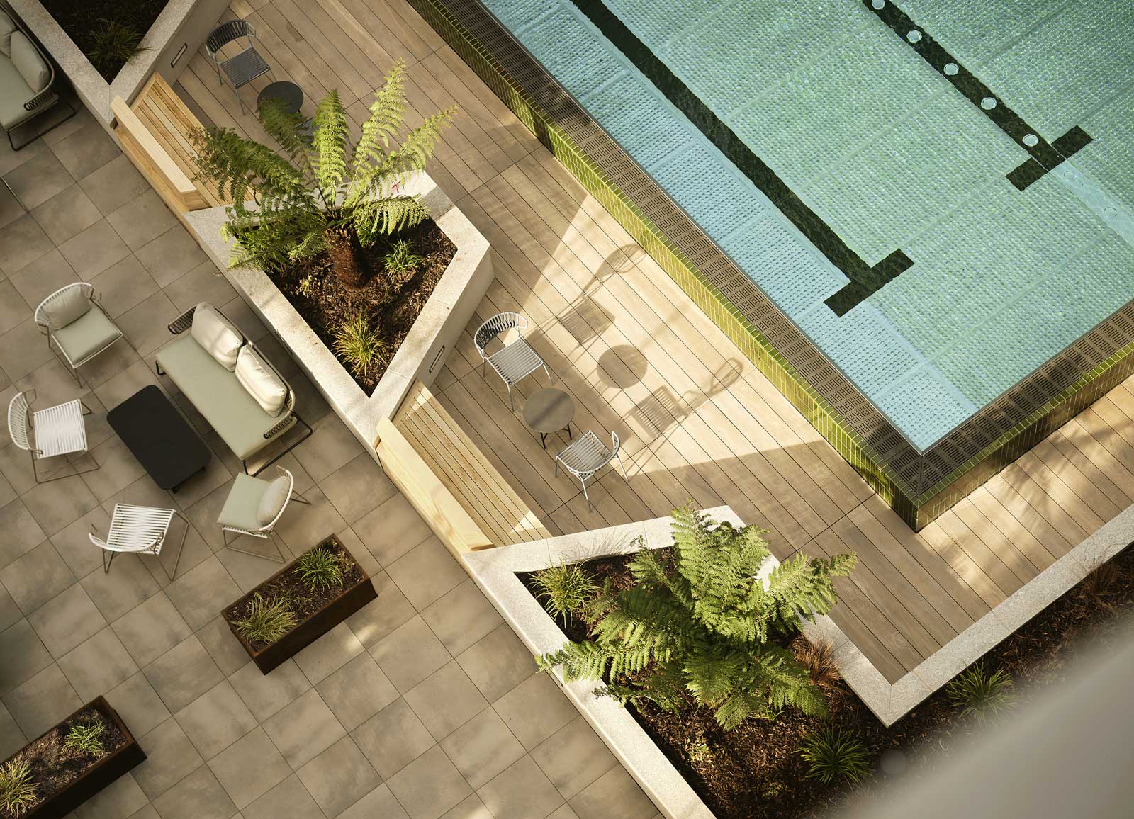 The New Acres complex is designed for high-quality residential living, featuring a wide range of communal amenities, including a pool. Award-winning landscaping and construction company, NAO Landscapes Ltd, chose Dura Deck Inspire for the poolside application at New Acres.
